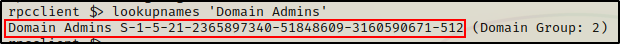 正如之前在用户枚举部分看到的,我们可以根据十六进制 RID 值查询任何组。