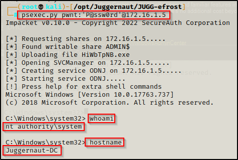 psexec.py pwnt:'P@ssw0rd'@172.16.1.5