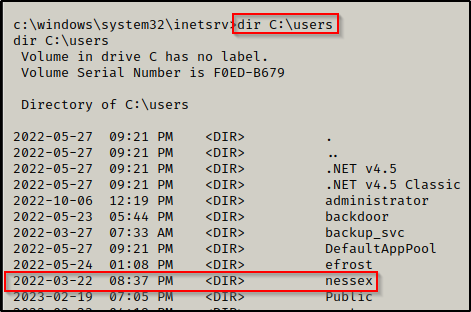 - 另外,我们发现用户 nessex 在这台机器上有一个家配置文件,这意味着该用户之前在这台机器上登录过。