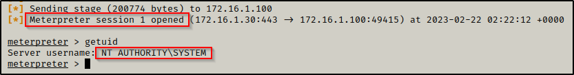 除了上面的手动方法外,我们还可以使用 Metasploit 来执行此攻击。为此,我们需要获得一个 Meterpreter shell。