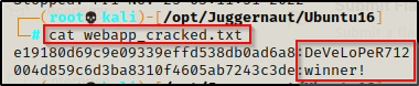 瞬间,哈希值就被成功破解(0 秒)。然后,检查密码文件,我们发现 devops 用户的密码与我们之前找到的密码相同,但 admin 用户的密码是新密码!