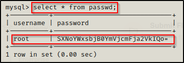 看起来我们找到了另外一个 root 密码,但从末尾的等号来看,它可能是 base64 编码的。