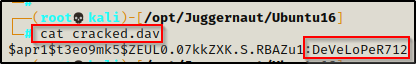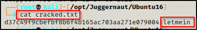 一秒钟,我们就破解了哈希!现在我们需要从输出结果的 cracked.txt 文件中查看密码。