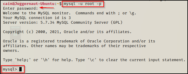 命令历史记录告诉我们,用户尝试通过在命令行上直接传递 root 凭据来登录 MySQL 服务器。