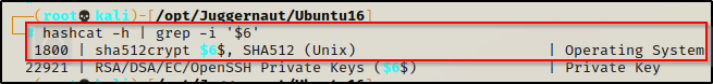 这里告诉我们这是一个 SHA-512 Unix OS 哈希,当我们看到它们看起来像影子文件哈希时,我们已经预料到了 – 因为它们就是!