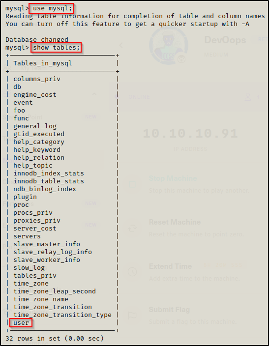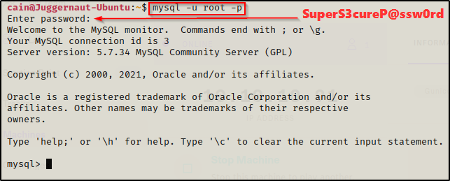但是,当我们尝试使用这些凭据访问 MySQL 数据库时,我们能够顺利进入!