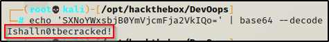 echo 'SXNoYWxsbjB0YmVjcmFja2VkIQo=' | base64 --decode