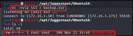 由于这是一个备份文件,因此我们应该考虑将此文件下载到我们的攻击者机器上用以仔细查看。为此,我们可以使用 netcat。