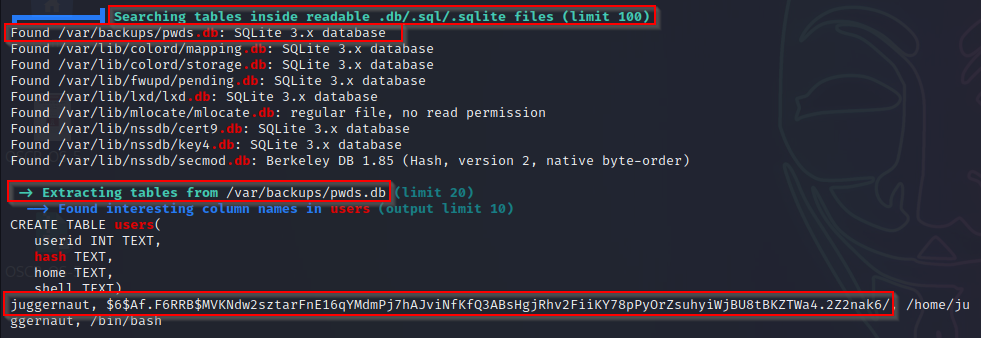 还不错!LinPEAS 能够枚举出我们能够发现的大多数包含密码的文件,甚至从其中一些文件中提取了密码和哈希值。然而,这些结果同时也告诉我们,虽然 LinPEAS 非常出色,但没有什么比人工枚举更有效了(因为 LinPEAS 同时也枚举出了很多干扰文件)。