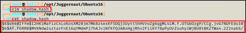 由于我们只关心哈希本身,因此我们只需要从$6$复制到 SHA-512 字符串的末尾。将两者复制到攻击者的机器后,它应该如下所示: