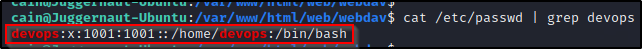 我们可以看到哈希值属于 devops 用户,检查 /etc/passwd 文件,我们可以确定该账户在系统上是有效用户!