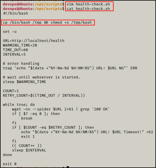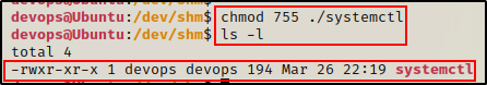 有趣的是,一旦文件被移动,devops 将成为文件所有者。这意味着我们可以在移动脚本后对其进行编辑,然后将其移回原始文件夹。