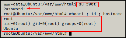 太棒了!漏洞利用成功,并创建了一个 root 用户。现在,我们只需使用 su 命令即可成为 r00t,并在提示时输入 password 作为密码。