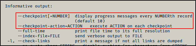 当 cron job 使用 tar 压缩目录时,会执行第一个 checkpoint 开关,启动检查点,一旦检查点启动,checkpoint-action 开关就会触发并为我们执行一个文件。