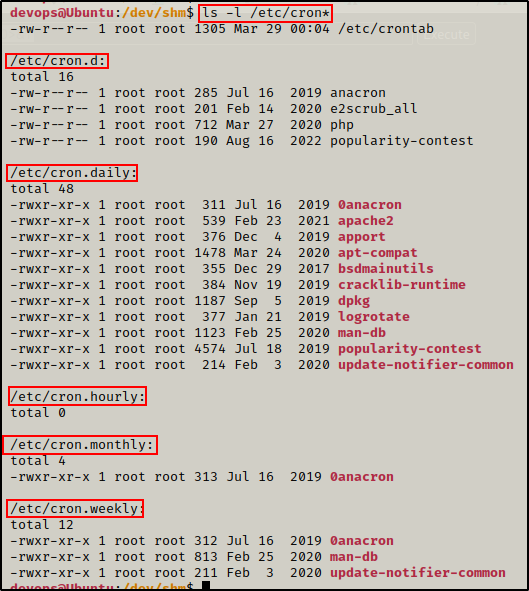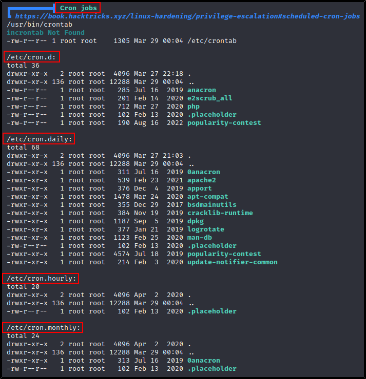 作为攻击者,我们应该记住可以创建 cron 作业的其他位置。良好的做法并不总是标准做法,因此我们应该检查可以存储 cron 作业的所有可能位置。
