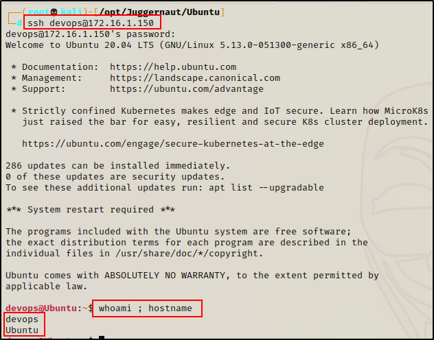 找到用户凭证后,我们能够使用 SSH 在目标主机上立足。