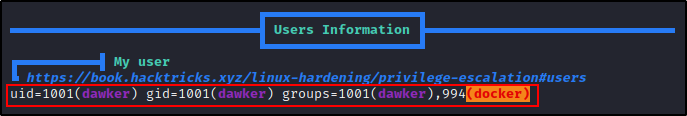 下一部分我们将在 “User Information” 部分找到有关 docker 的信息。
