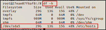 在这里,我们可以看到 sda5 是主机驱动器,这也是我们在前面的 fdisk 命令输出中看到的。