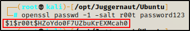 首先,我们需要在攻击者计算机上为 root 用户生成密码哈希。