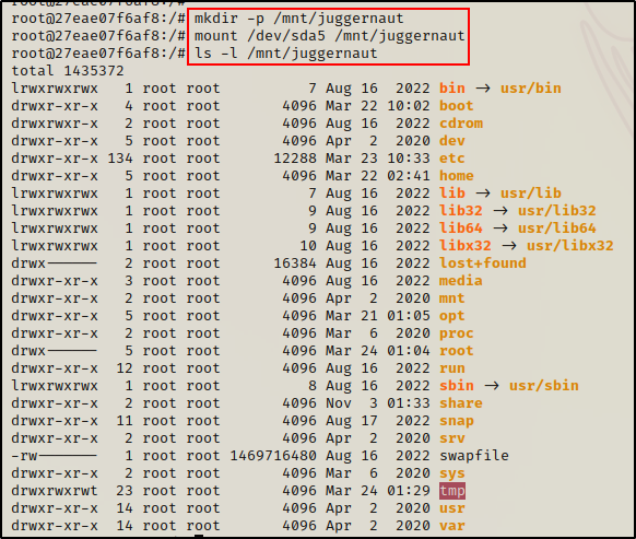 mount /dev/sda5 /mnt/juggernaut