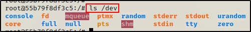 与在特权容器中相比,在 /dev 中几乎看不到任何文件或子目录,这进一步表明该容器没有特权。