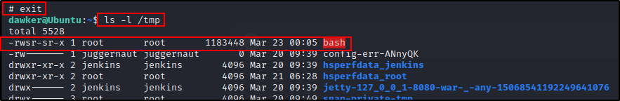 以上执行结果也向我们表明第二个用户 “devops” 也在 docker 组中。而如果我们以既不是 “devops” 也不是 “dawker” 的用户身份进入 shell,那么我们会想要寻找一种方法来水平提权到其中一个用户。