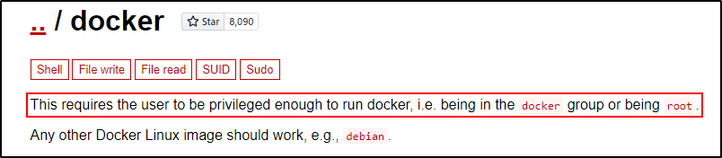 3.1、在 GTFOBins 上查找 Docker 利用