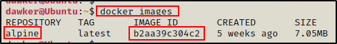 可以看到,这里安装了一个 Alpine 镜像,因此我们可以记下存储库名称 “alpine”,以便在启动容器时使用该名称。