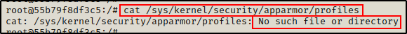 Perfect!我们检查该文件后发现它不存在,这意味着 AppArmor 未被加载!