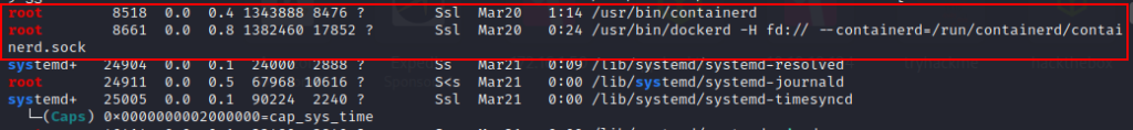 接着,我们来到 “Processes, Crons, Timers, Services and Sockets” 部分,在这里我们可以看到 dockerd 进程由 root 拥有。