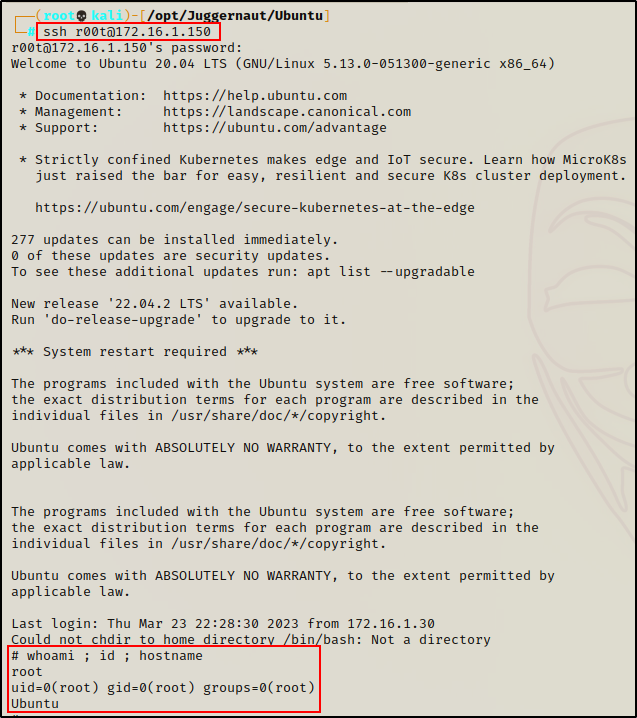 ssh r00t@172.16.1.150