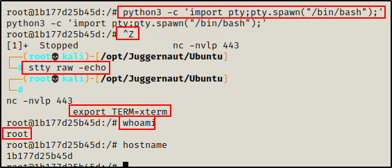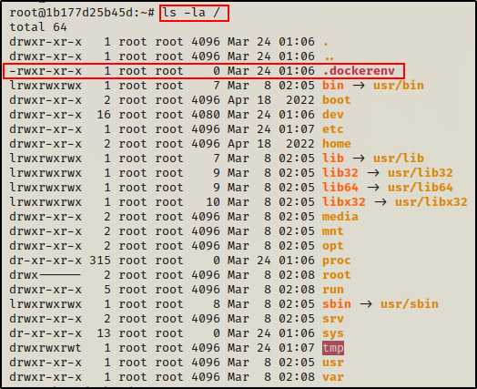 对于这个例子,假设我们已经升级到完整 TTY,并且我们还确认自己就是处于 docker 容器中。