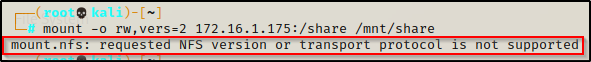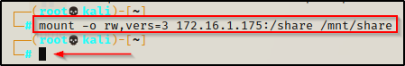 mount -o rw,vers=3 172.16.1.175:/share /mnt/share