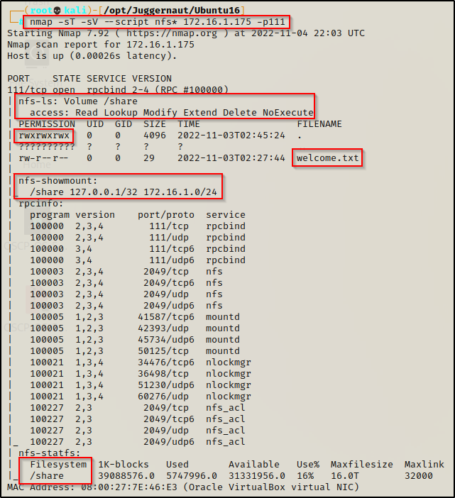 nmap -sT -sV --script nfs* 172.16.1.175 -p111
