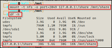 mount -t nfs -o port=2049 127.0.0.1:/share /mnt/share