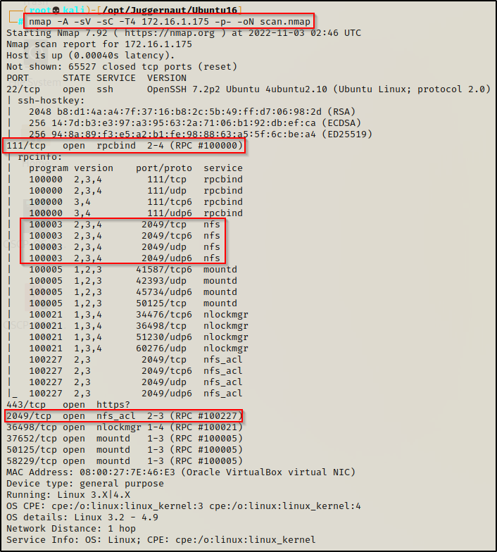 好吧,NFS 共享的端口是 2049,但我们对端口 111 也很感兴趣,因为那是 NFS 服务绑定的 rpc 端口,现在我们可以枚举该服务。