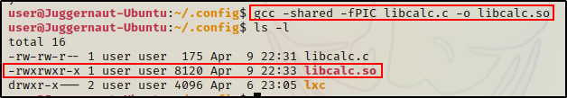 gcc -shared -fPIC libcalc.c -o /home/user/.config/libcalc.so