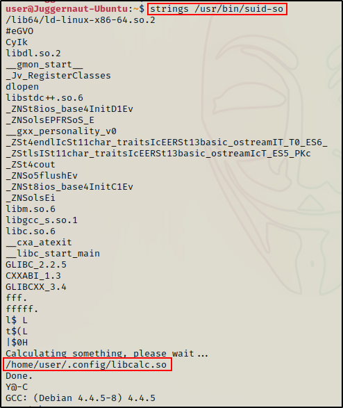 与使用 strings 命令类似,我们找到了从当前用户主目录执行的 libcalc.so 文件。