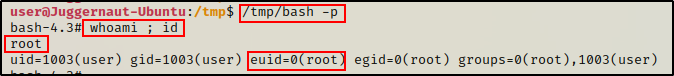 现在让我们看看如何将 bash 漏洞与自定义 SUID 二进制文件链接在一起,以将我们的权限提升为 root。
