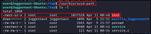 由于自定义 suid-sf 二进制文件使用的是 service 二进制文件的绝对路径,而除非我们在二进制文件所在目录中拥有写入权限,否则无法利用这一点。