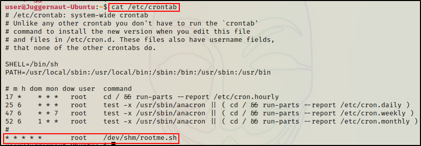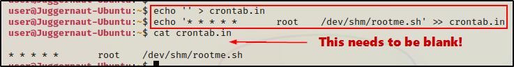 echo '* * * * * root /dev/shm/rootme.sh' >> crontab.in