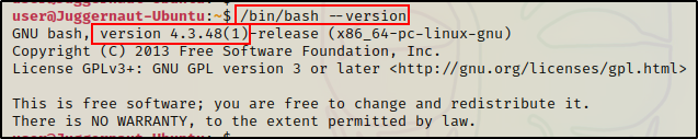 在这种情况下,我们可以检查受害者上运行的 bash 版本。