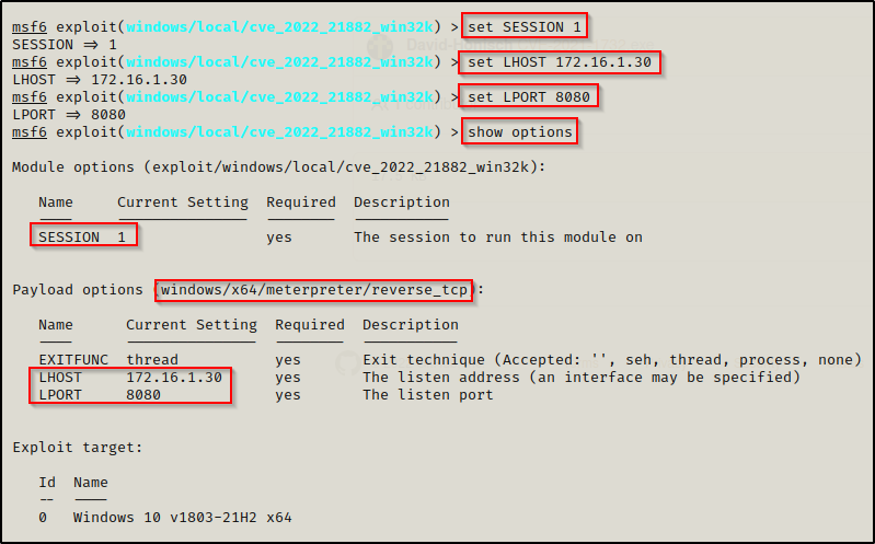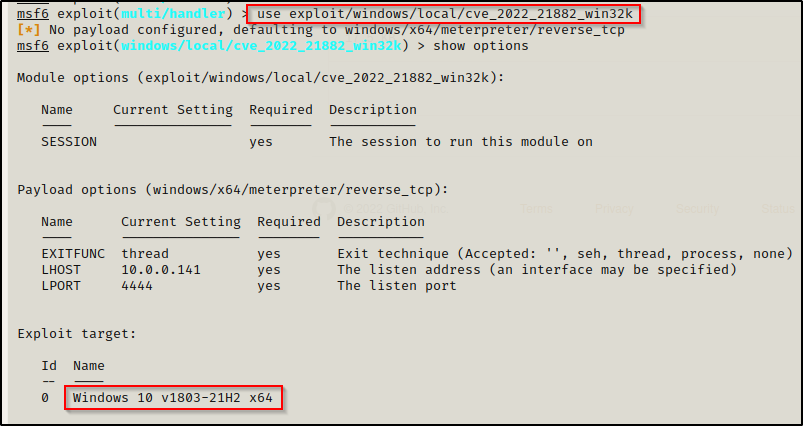 use exploit/windows/local/cve_2022_21882_win32k