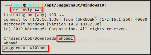 在此示例中,假设我们已经在 Windows10 机器上获得了标准用户 bob 的身份。