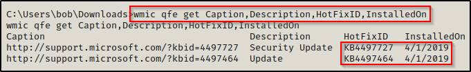 为了收集有关补丁的更多信息,可以使用以下 wmic 命令: